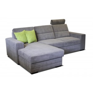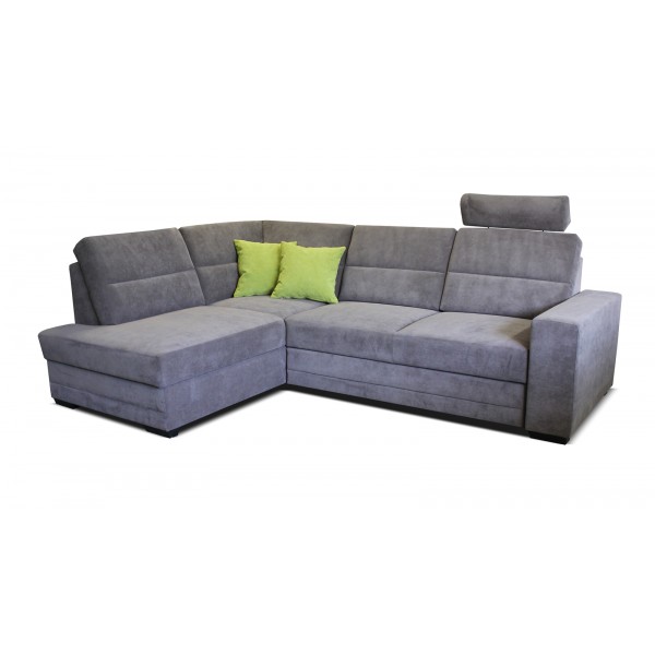 Pohodlná a moderná sedacia súprava. . Veľmi praktický model s lôžkom a dvoma veľkými úložnými priestormi. Opierky hlavy pre Vaše komfortné sedenie.