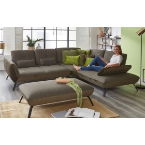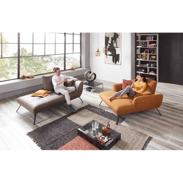 Dominantou sedacie súpravy sú jej podrúčky, ktoré možno spoločne kombinovať. Podrúčky typ A (pozri obrázky) si navyše môžete napolohovat tak, aby bolo sedenie pre Vás čo najpohodlnejšie. Súčasťou sedacej súpravy je nastaviteľná hĺbka sedenia pomocou posuvných operadiel. Moderné prevedenie sedacej súpravy podčiarkujú dizajnové kovové nožičky - na výber sú chrómové alebo čierne matné. Pre vyšší komfort sedenia Vám odporúčame za príplatok priobjednať výšku sedadla 46 cm. Sedacia súprava sa štandardne dodáva už s čalúnenými chrbtom vo vybranej látke, preto je sedacia súprava vhodná aj pre umiestnenie do priestoru. Sedacia súprava môže byť čalúnená aj v koži. Tu je potrebné si čalúnený chrbát doobjednať za príplatok. Tento model je možné objednať aj v inej zostave alebo ho doplniť taburetom. Na výber široká škála poťahových materiálov - látky, koža.