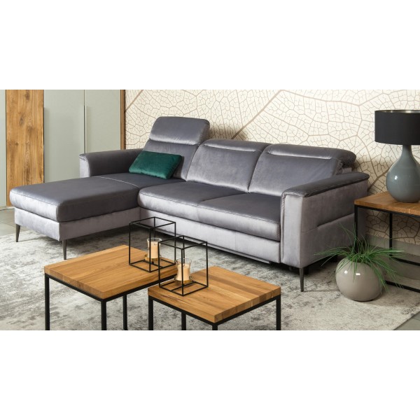 Sedacia súprava navrhnutá pre náročných zákazníkov, ktorý si cenia komfort a kvalitu. Vysoko kvalitný model, ktorý vďaka starostlivo vybraným proporciám a prepracovanej ergonómii zaisťuje skvelý komfort. Veľkou výhodou je funkčnosť nábytku. Funkcia lôžka a úložného priestoru poskytuje ďalšie výhody a pohodlie. Vyšší komfort pri sedení zabezpečia aj polohovateľné opierky hlavy s možnosťou nastavenia sklonu. Vďaka možnosti ich úpravy vieme zmeniť aj dizajn zostavy. Výplň sedení je na báze vysokoodolnej polyuretánovej peny HR (High Resiliense Foam), ktorá dodáva pocit dokonalej mäkkosti a pružnosti a zároveň zaisťuje dlhšiu životnosť (elasticitu) sedačky.
