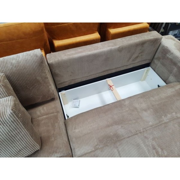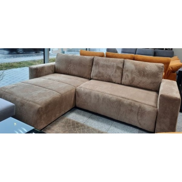 Rohová sedacia súprava sa rozkladá, takže sa z nej ľahko stane pohodlné lôžko pre hostí. Mechanizmus automat DL umožňuje rýchlo a dômyselne zložiť a rozložiť sedačku a tak mať k dispozícií priestor na spanie. Model má úložný priestor, ktorý vám umožní diskrétne uložiť lôžkoviny či rôzne predmety. Ide o praktické riešenie, vďaka ktorému udržite poriadok v obývačke. Sedák je vyrobený z HR peny (High Resilience) a vlnitých pružín. Táto kombinácia zaručuje pohodlie, pohodlie a primeranú oporu tela. Spacia plocha: 125 cm x 235 cm